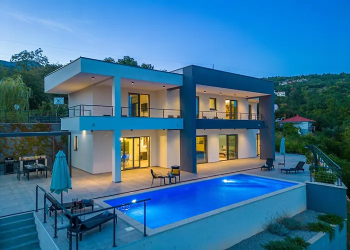 Villa Ziganto With A View Of The Kvarner Bay i Opatija er en 4 værelses indkvartering med en terrasse og udsigt over havet. Villa har 4 badeværelser og et udstyret køkken.